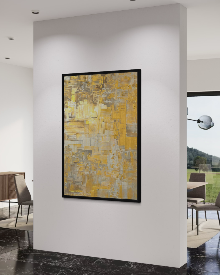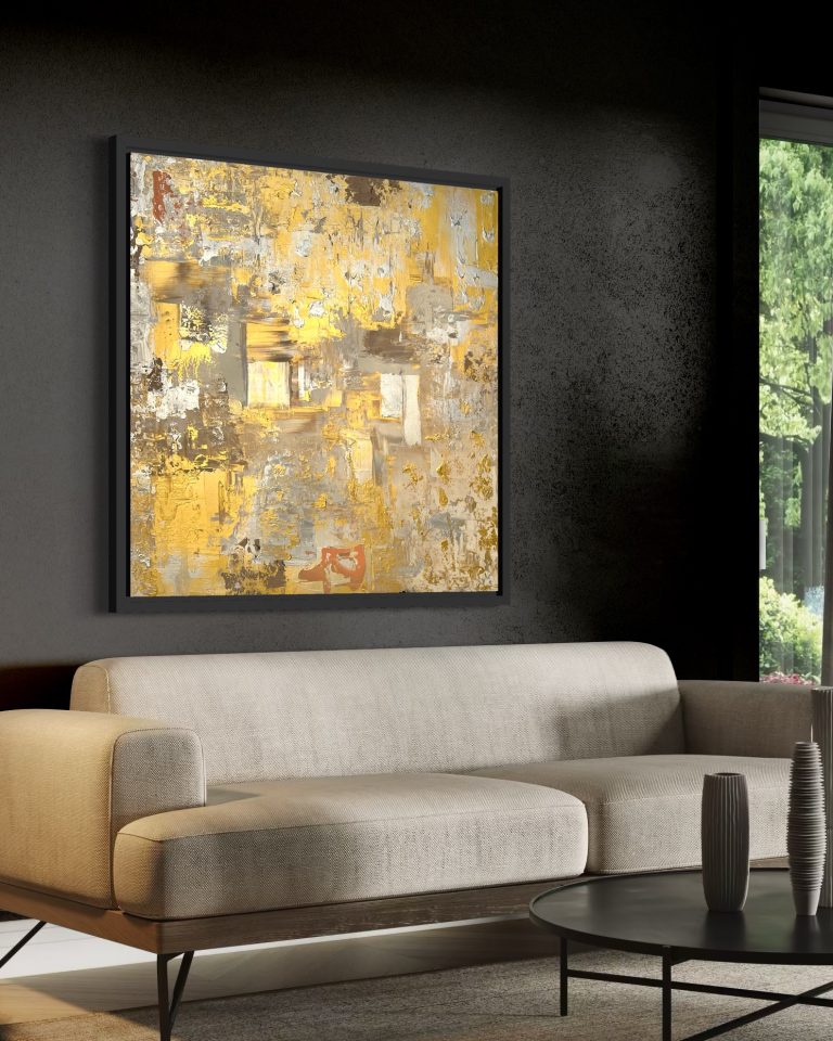 Dieses atemberaubende expressionistische vintage Werk aus der antik-anmutenden Serie, ist das 3. Kunstwerk in 2026, welches die Essenz von Gold einfängt und dem Raum ein wohliges Gefühl von Wärme und Luxus gibt.
