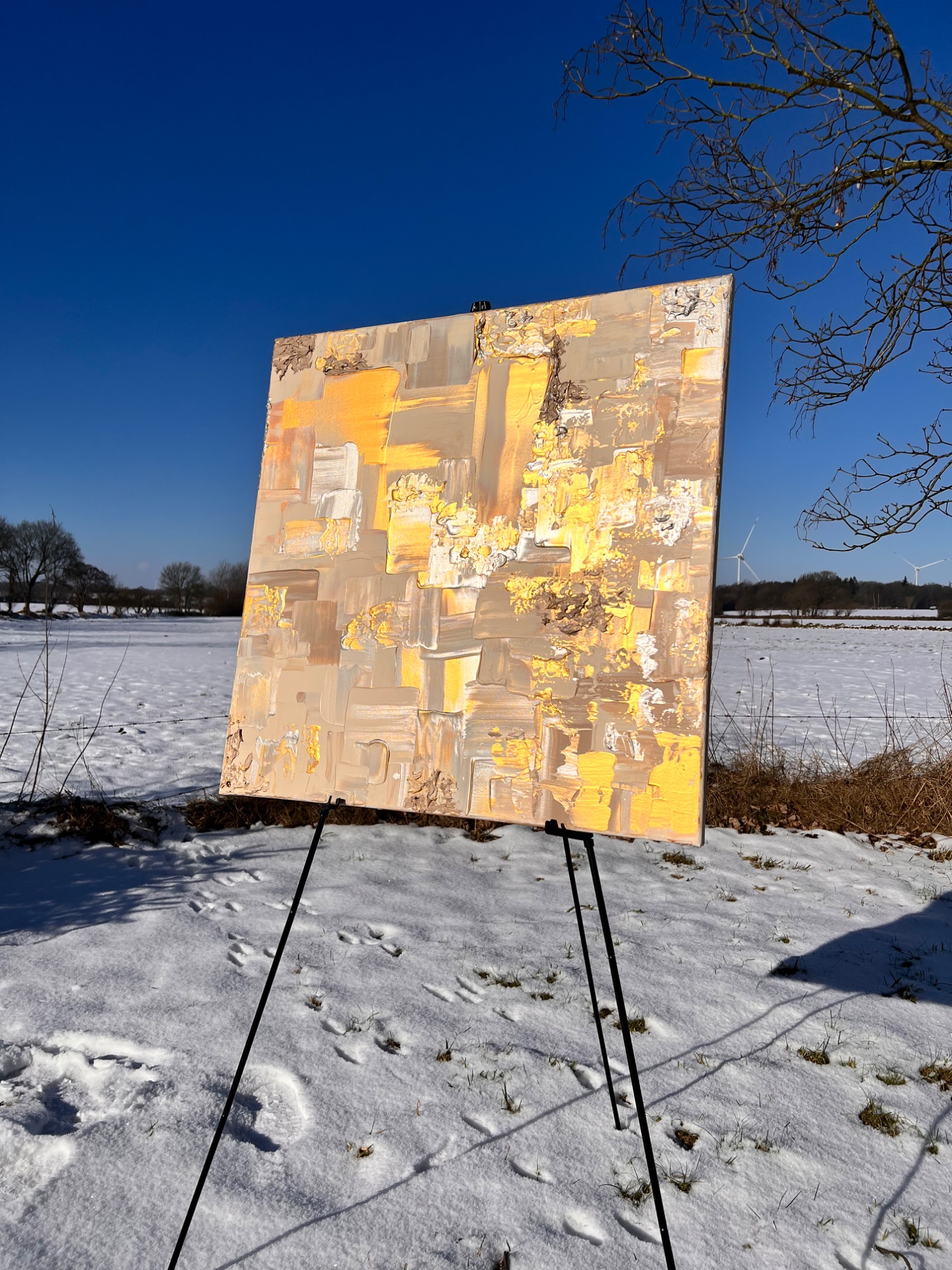Der Betrachter kann sich dem warmen Gold und Beige hingeben und in den expressionistischen Strukturen ergötzen. Es strahlt eine Stille aus, eine Komposition die tief wirkt, bei welcher man zur Ruhe kommt.