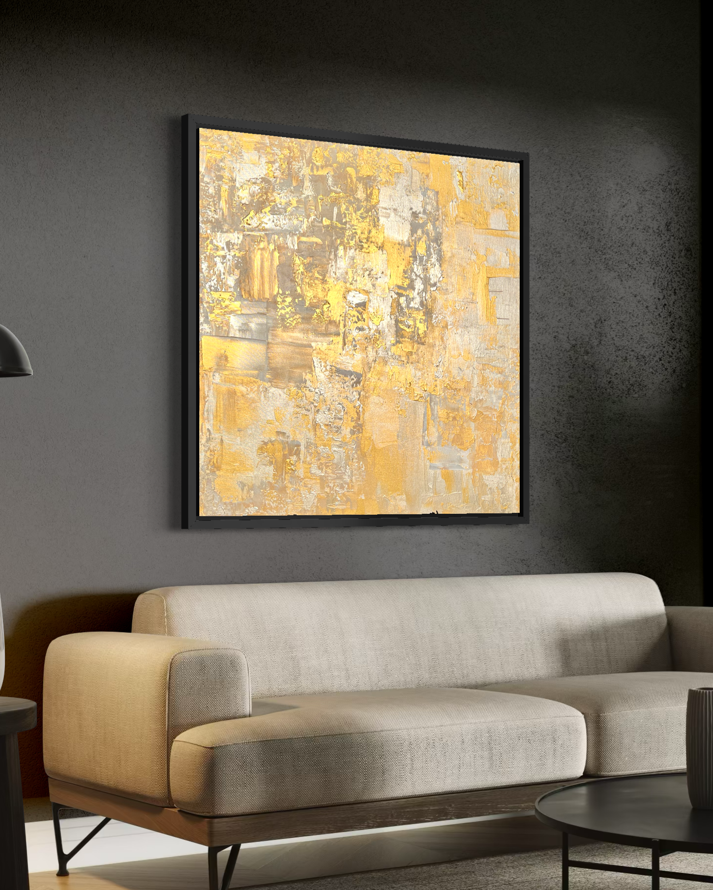 Dieses atemberaubende expressionistische vintage Werk aus der antik-anmutenden Serie, ist das 3. Kunstwerk in 2026, welches die Essenz von Gold einfängt und dem Raum ein wohliges Gefühl von Wärme und Luxus gibt.