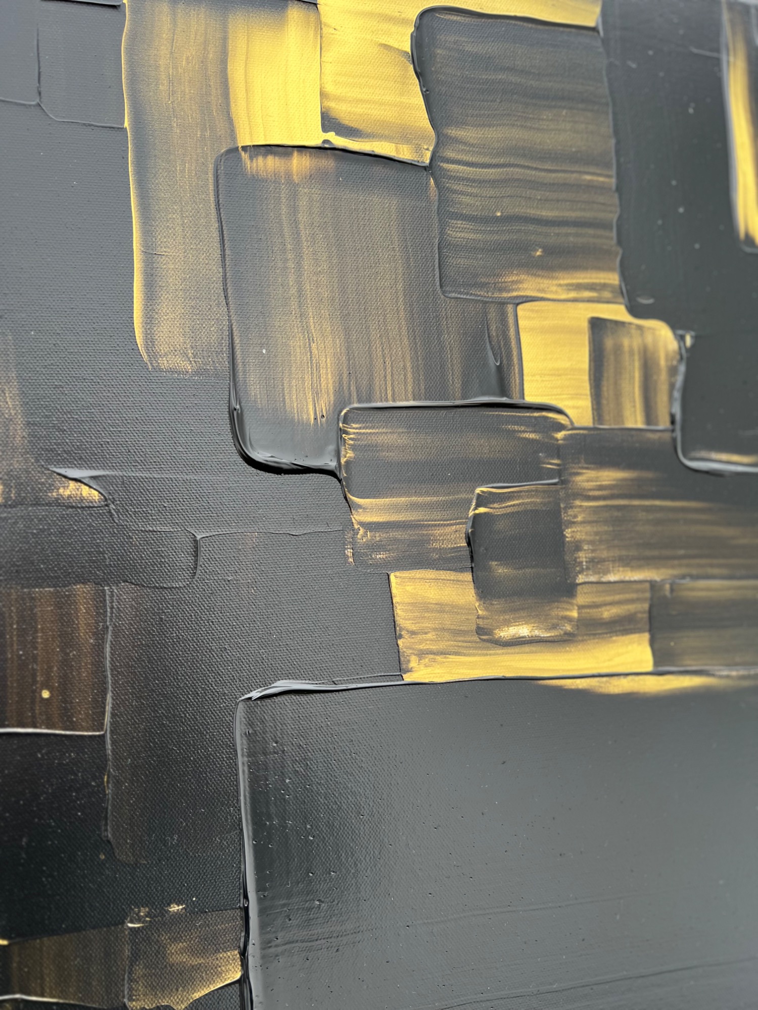 Dieses Werk besticht durch das kraftvolle Zusammenspiel zwischen schwarz und glänzendem gold.